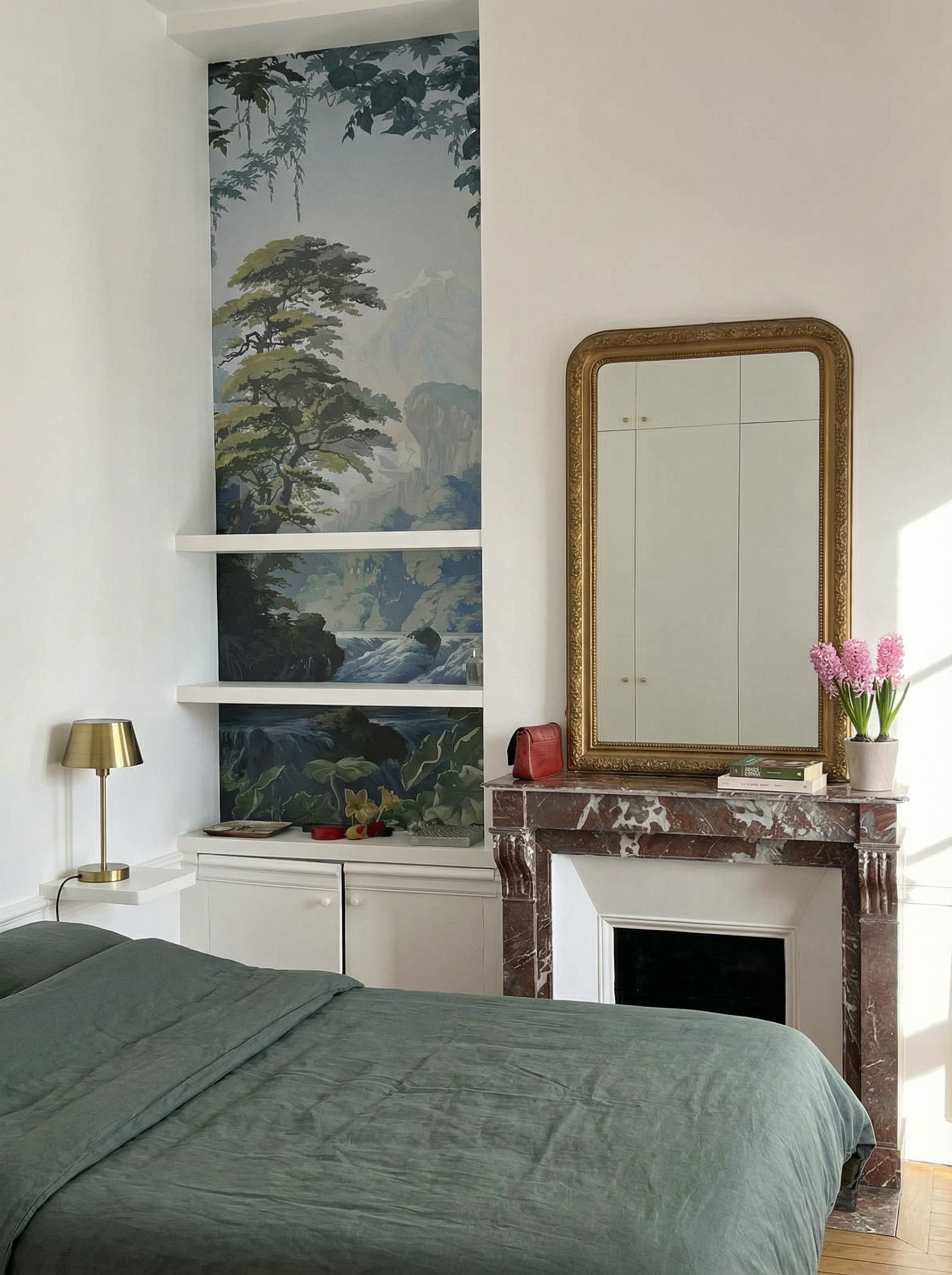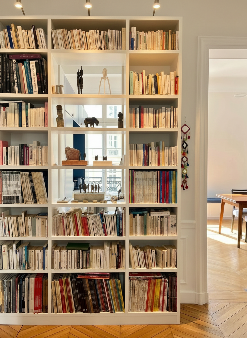 L'appartement avait subi de nombreuses transformations de type « bricolage » au cours des décennies. De la cuisine accessible par un escalier dérobé qui était devenue une chambre au remplacement d'une magnifique fenêtre à fermeture mouton et gueule de loup par une minuscule fenêtre oscillo-battante après l'ajout d'une salle-de-bain étonnamment placée… Les pathologies associées à certains de ces travaux, notamment l'humidité et l'absence de lumière naturelle dans les salles de bain posaient des problèmes à mettre en ordre sans révolutionner l'appartement par ailleurs très bien distribué en étoile. Avec ce projet d'acupuncture, le bel appartement a retrouvé son harmonie, le soin apporté à ses matériaux, sa ventilation et une belle distribution de lumière avec une percée de la salle à manger vers le salon.