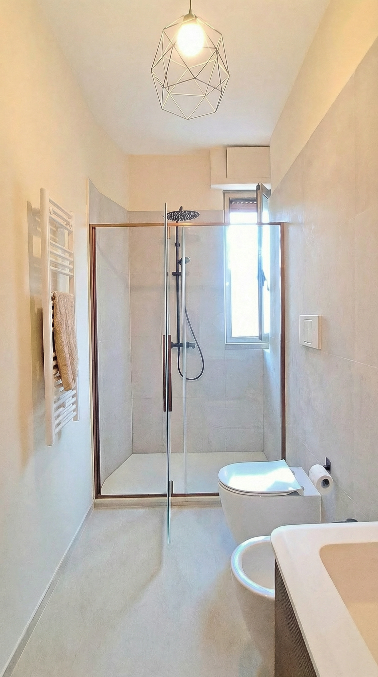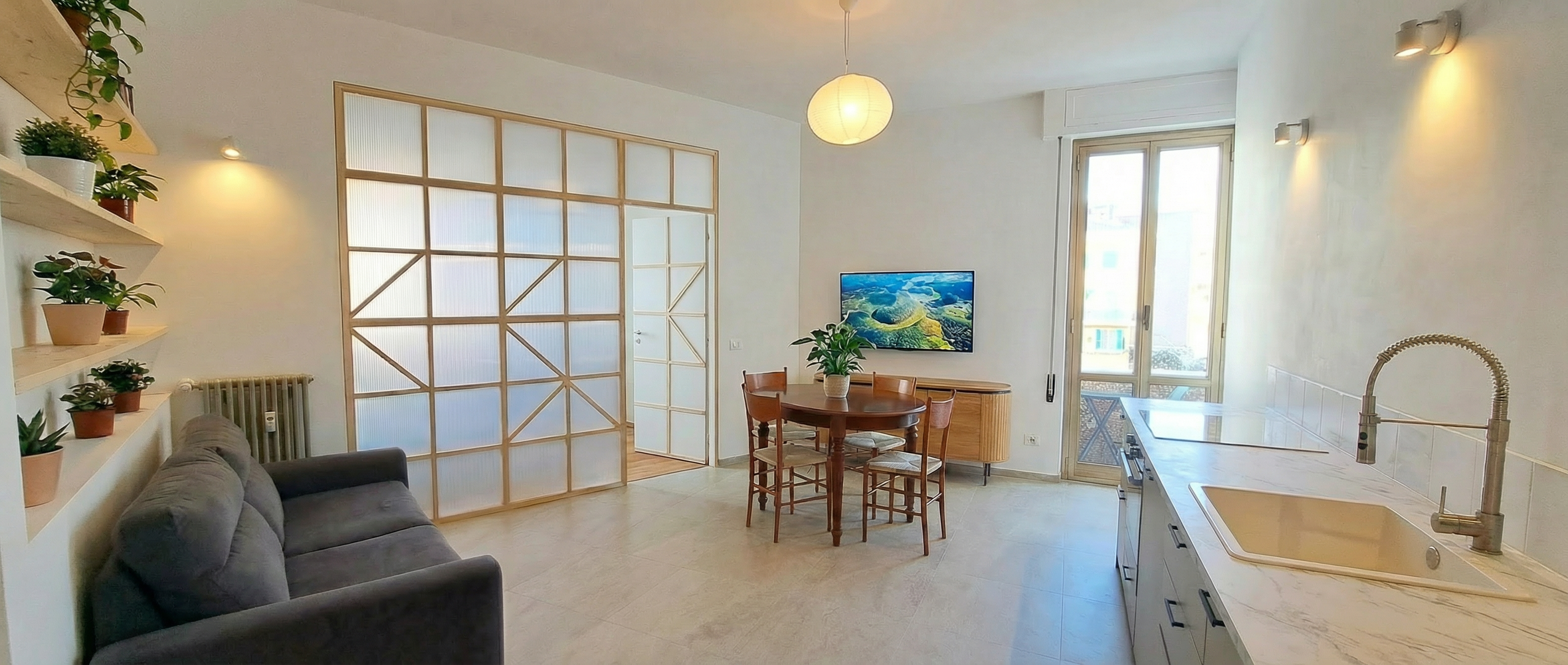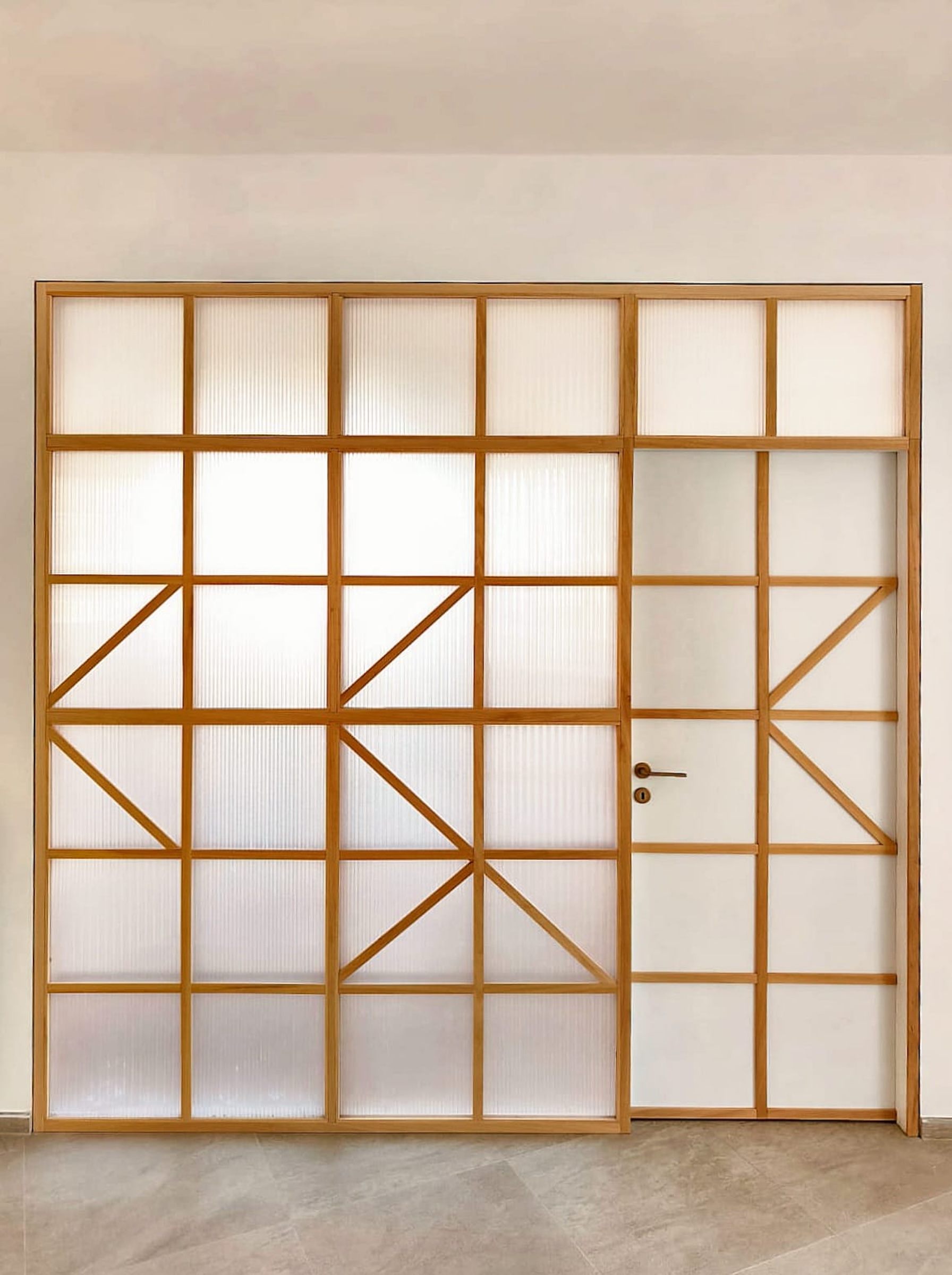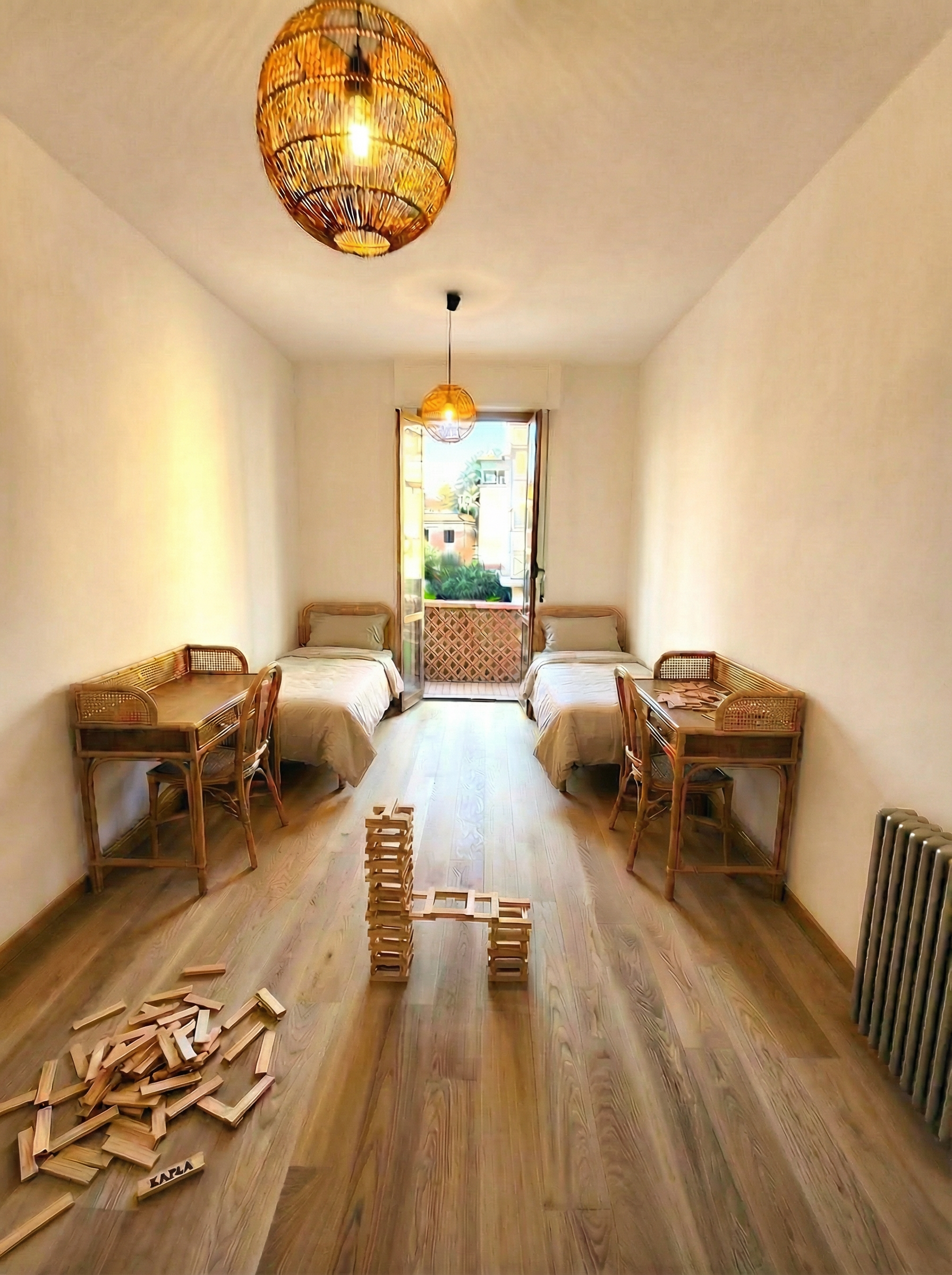 L’appartement dans son jus ne prévoyait qu’une chambre quand la nouvelle famille occupante en souhaitait deux. La dépose de certaines cloisons et la mise en œuvre d’une cloison translucide en bois et polycarbonate a permis de rediviser l’appartement tout en conservant des pièces baignées de lumière naturelle. La salle-de-bain a été complètement réagencée afin de gagner en espace utile et en ergonomie. La bibliothèque intègre le coffrage qui dissimule les réseaux d’eau des radiateurs. Elle habille le coin salon de la pièce de vie principale.